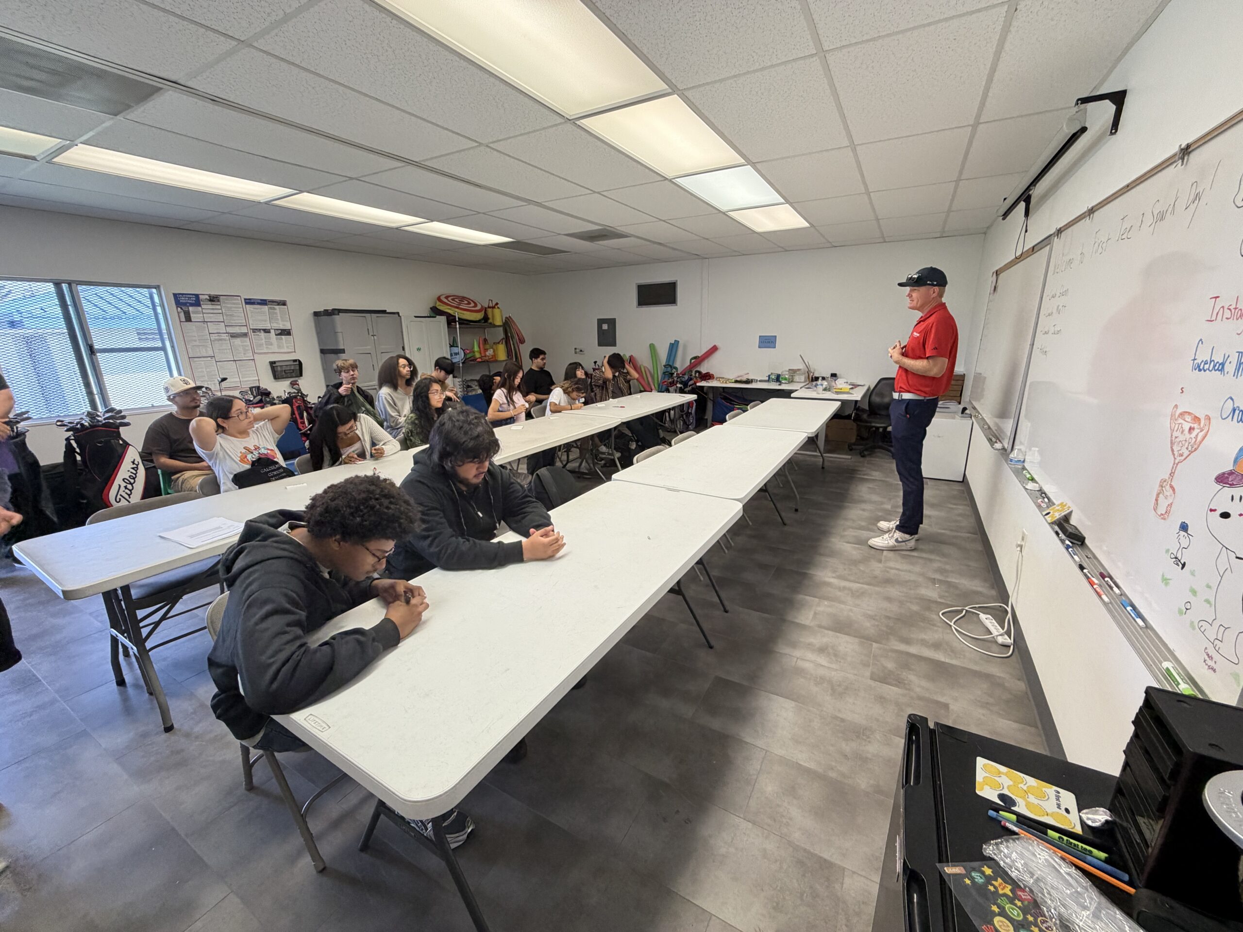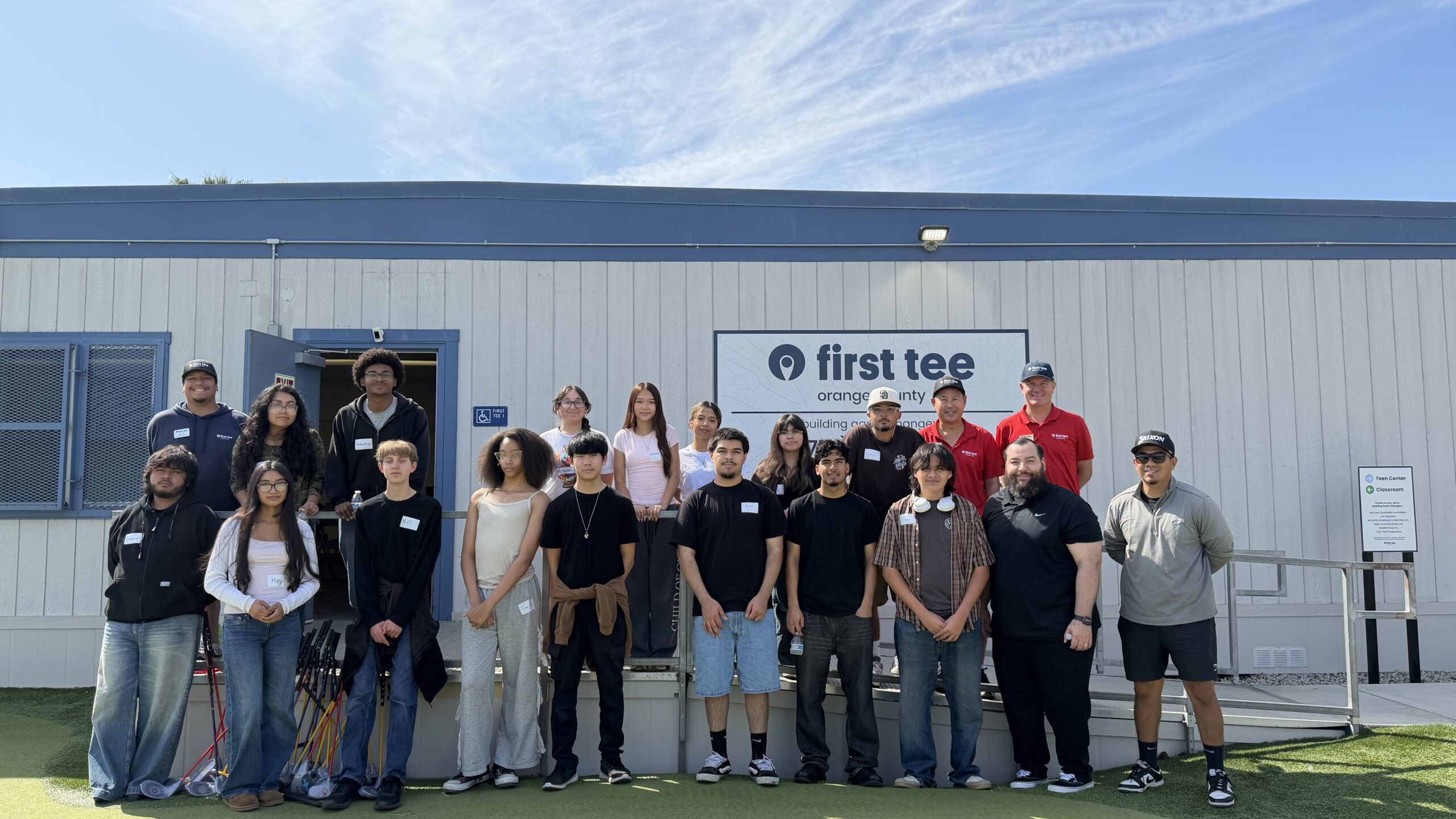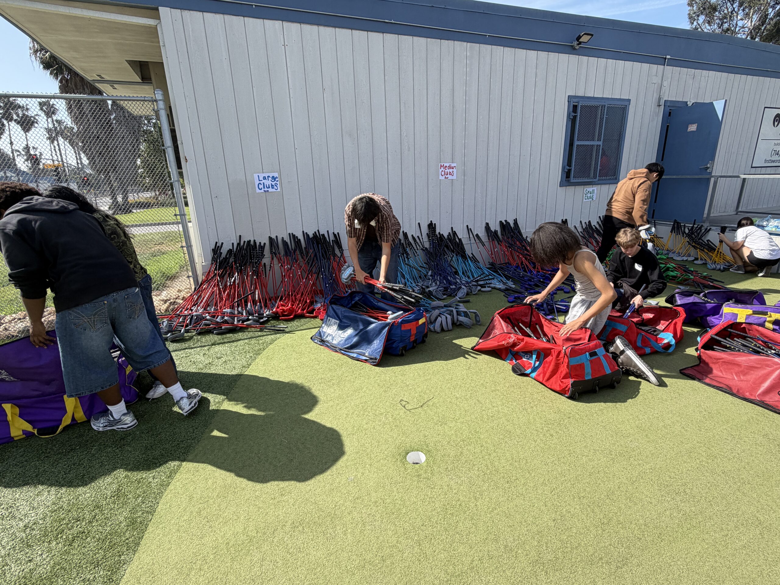 Henry and Susan Samueli founded the Samueli Foundation in 1999. From that, the Samueli Academy was born in Santa Ana- a tuition-free, public charter school for grades 7-12. Every year, the Samueli Academy hosts a “SparkDay”- an event created to connect student groups with local community organizations to volunteer and address real community needs. Through this experience, students develop a deeper sense of leadership, responsibility, and connection to their community. On Friday, March 27th, we had 15 High School Juniors from the Samueli Academy give an hour of their time organizing a large inventory of golf equipment for us at Dad Miller Golf Course. The next hour the teens had the opportunity to experience a First Tee class, learning about pursuing goals and hitting golf balls on the range- a first for many of the teens. We appreciate their support as volunteers and look forward to providing them with more new experiences like this!